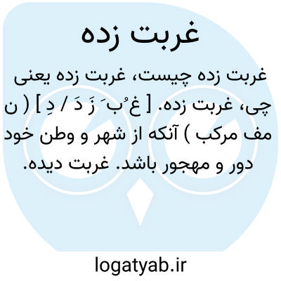 غربت زده. [ غ ُب َ زَ دَ / دِ ] ( ن مف مرکب ) آنکه از شهر و وطن خود دور و مهجور باشد. غربت دیده. ( آنندراج ):