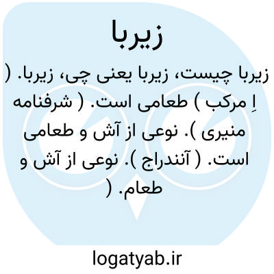 چه نیکو بدی گر بدی زیربا.فردوسی.گاوان را هریسه ساز و گوسپندان را زیربای مزعفر. ( اسرار التوحید ).