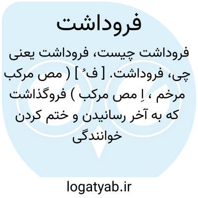 فروداشت. [ ف ُ ] ( مص مرکب مرخم، اِ مص مرکب ) فروگذاشت که به آخر رسانیدن و ختم کردن خوانندگی باشد. ( برهان ). ( اصطلاح موسیقی ) در اصطلاح موسیقی مقابل برداشت. ( یادداشت بخط مؤلف ):