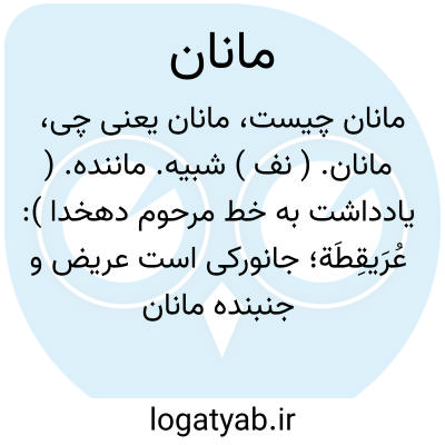 مانان. ( نف ) شبیه. ماننده. ( یادداشت به خط مرحوم دهخدا ): عُرَیقِطَة؛ جانورکی است عریض و جنبنده مانان به گوه گردان: ناقة مُعَلَّسَة؛ شتر ماده مانان به شتر نر. فلان عطسة فلان؛ یعنی شبیه و مانان اوست در خلق و خلق. ( منتهی الارب ).