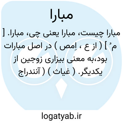 مبارا. [ م ُ ] ( از ع، اِمص ) در اصل مبارات بود،به معنی بیزاری زوجین از یکدیگر. ( غیاث ) ( آنندراج ).مخفف مباراة عربی. ( فرهنگ فارسی معین ):