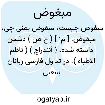( اسم ) مبغض دشمن داشته. توضیح از کلمات ساختگی است که بجای مبغض بر وزن محکم استعمال میشود و فعل آن ابغض بر وزن اکرم است ( حریری در کتاب دررالغواص فی اوهام الخواص قسطنطنیه ۱۲۹۹ ص ۲۲ گوید: من اوهامهم ایضا فی تغییر صیغه المفاعیل و هومن مفاضح اللحن الشنیع قولهم قلب متعوب و عمل مفسود و رجل مبغوض و وجه القول ان یقال قلب متعب و عمل مفسد و رجل مبغض لان اصول افعالها رباعیه و مفعول الرباعی یبنی علی مفعل فکما یقال اکرم فهو مکرم و اضرم فهو مضرم کذلک یقال اتعب فهو متعب و افسد فهو مفسد و ابغض فهو مبغض و اخرج فهو مخرج. ولی در فارسی بسیار مستعمل است: و آفرید او وصفهای عارضی که کسی مبغوض میگردد رضی. ( مثنوی )