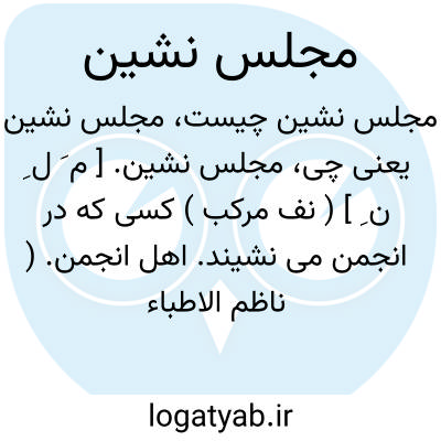 مجلس نشین. [ م َ ل ِ ن ِ ] ( نف مرکب ) کسی که در انجمن می نشیند. اهل انجمن. ( ناظم الاطباء ). که در مجلس نشیند. اهل مجلس. حاضر در مجلس: