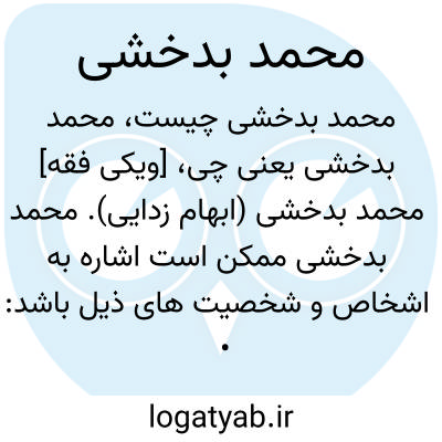 [ویکی فقه] محمد بدخشی (ابهام زدایی). محمد بدخشی ممکن است اشاره به اشخاص و شخصیت های ذیل باشد: • ملاشاه محمد بدخشی، ملقب به ملاّ شاه صوفی، شاعر و نویسنده قرون دهم و یازدهم• محمد بن رستم بدخشی، از علمای علم حدیث و رجال در شبه قاره هند• ملامحمد بدخشی (صوفی)، بَدَخشی (یا بَلَخشی)، ملاّ محمّد، صوفی نقشبندی حنفی• ملامحمد بدخشی (شاعر)، تخلص شاعر سده ۹ق /۱۵م در سرزمین خراسان قدیم