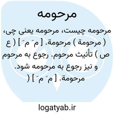 ( مرحومة ) مرحومة. [ م َ م َ ] ( ع ص ) تأنیث مرحوم. رجوع به مرحوم و نیز رجوع به مرحومه شود.