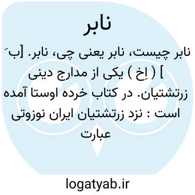 نابر. [ب َ ] ( اِخ ) یکی از مدارج دینی زرتشتیان. در کتاب خرده اوستا آمده است: نزد زرتشتیان ایران نوزوتی عبارت است از آداب و مراسمی که پس از اجرای آنها هیربدزاده ای نابر یا ناور یا نونابر می شود یا به درجه یک پیشوای دینی رسیده هیربد میگردد... از برای نابر شدن سن پانزده سالگی شرط شده است. ( خرده اوستا ص 69 و 70 ).