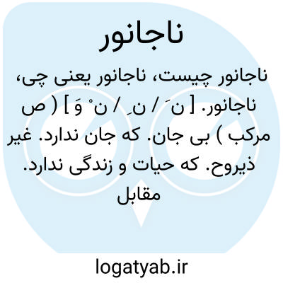 ناجانور. [ ن َ / ن ِ / ن ْ وَ ] ( ص مرکب ) بی جان. که جان ندارد. غیر ذیروح. که حیات و زندگی ندارد. مقابل جانوربه معنی حیوان و زنده و ذیروح و جاندار: