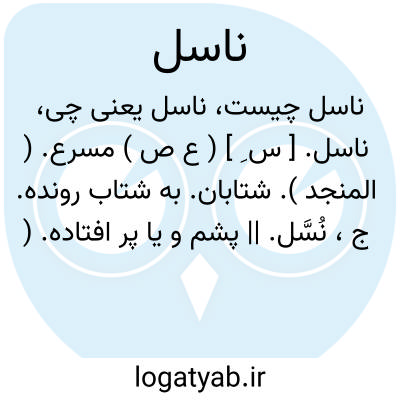 ناسل. [ س ِ ] ( ع ص ) مسرع. ( المنجد ). شتابان. به شتاب رونده. ج، نُسَّل. || پشم و یا پر افتاده. ( ناظم الاطباء ).