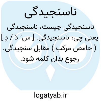 ناسنجیدگی. [ س َ دَ / دِ ] ( حامص مرکب ) مقابل سنجیدگی. رجوع بدان کلمه شود.