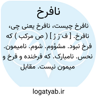 نافرخ. [ ف َرْ رُ ] ( ص مرکب ) که فرخ نبود. مشؤوم. شوم. نامیمون. نحس. نامبارک. که فرخنده و فرخ و میمون نیست. مقابل فرخ: