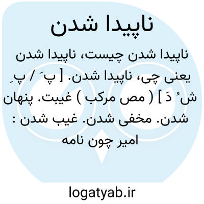 ناپیدا شدن. [ پ َ / پ ِ ش ُ دَ ] ( مص مرکب ) غیبت. پنهان شدن. مخفی شدن. غیب شدن: امیر چون نامه بخواند سجده کرده پس برخاست و بر قلعت برفت و از چشم ناپیدا شد. ( تاریخ بیهقی ). و بروی آب همی شد تا از دیدار مردم ناپیدا شد. ( منتخب قابوسنامه ص 32 ). چون صبح صادق از مطلع آفاق شارق گشت اعلام خورشید پیدا آمد و رایات تیر و ناهید ناپیدا شد. ( سندبادنامه ص 41 ).