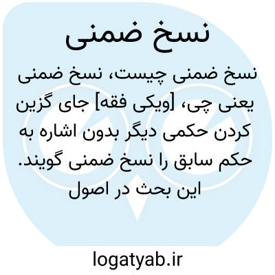 [ویکی فقه] جای گزین کردن حکمی دیگر بدون اشاره به حکم سابق را نسخ ضمنی گویند. این بحث در اصول فقه کاربرد دارد.
