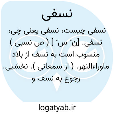 نسفی. [ن َ س َ ] ( ص نسبی ) منسوب است به نسف از بلاد ماوراءالنهر. ( از سمعانی ). نخشبی. رجوع به نسف و نخشب شود.