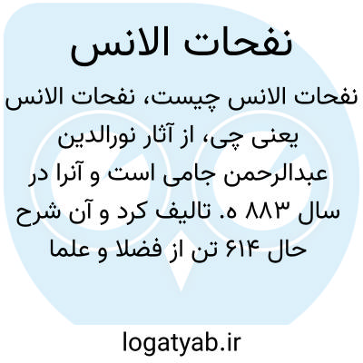 [ویکی نور] نفحات الأنس، از آثار عارف مشهور قرن نهم هجری، عبدالرحمن بن احمد جامی است که در آن، تعدادی از شخصیت های صوفی و عارف را به زبان فارسی شناسانده است.