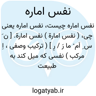 ( نفس امارة ) نفس امارة. [ ن َ س ِ اَم ْ ما رَ / رِ ] ( ترکیب وصفی، اِ مرکب ) نفسی که میل کند به طبیعت بدنی و امر دهد به لذت و شهوات حسی و قلب را به جهت سفلی بکشاند، و آن مأوای بدی ها و منبع اخلاق ذمیه است. ( از تعریفات ). خواهش طبیعت انسان که به سوی لذات دنیوی باشد، اماره به معنی بسیار امرکننده و سخت حکم کننده است. ( از غیاث اللغات ) ( از آنندراج ). روح انسانی را به اعتبار غلبه حیوانیت نفس اماره گویند از جهت آنکه صاحب آن را همواره امر به کارهای بد می کند.( فرهنگ مصطلحات عرفا از شرح فصوص ص 10 ):