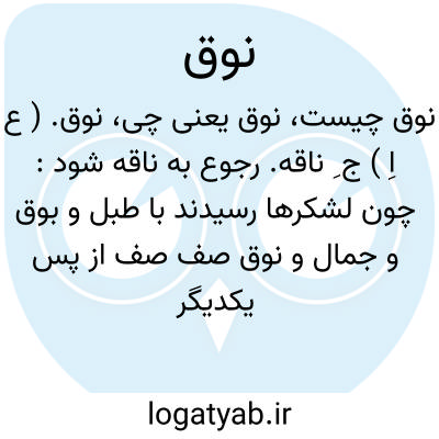 نوق. ( ع اِ ) ج ِ ناقه. رجوع به ناقه شود: چون لشکرها رسیدند با طبل و بوق و جمال و نوق صف صف از پس یکدیگر ایستاده و محاربت را آماده. ( جهانگشای جوینی ).