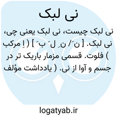 نی لبک. [ ن َ/ ن ِ ل َ ب َ ] ( اِ مرکب ) فلوت. قسمی مزمار باریک تر در جسم و آوا از نی. ( یادداشت مؤلف ). قسمی آلت موسیقی بادی است که آن را از نی سازند، یک سر آن را بین دو لب نهند و با دمیدن نوازند. ( فرهنگ فارسی معین ).