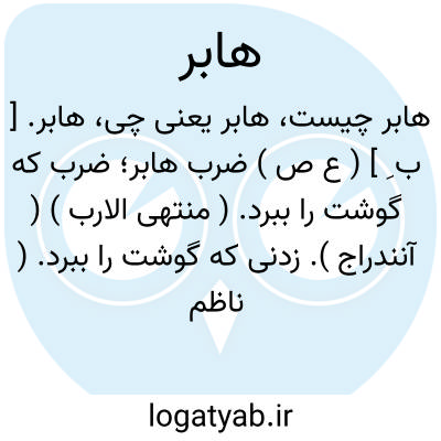 هابر. [ ب ِ ] ( ع ص ) ضرب هابر؛ ضرب که گوشت را ببرد. ( منتهی الارب ) ( آنندراج ). زدنی که گوشت را ببرد. ( ناظم الاطباء ). ضرب هبرو هبیر. هابر یعنی قاطع گوشت. ( تاج العروس ). || نام مردی است. ( منتهی الارب ).