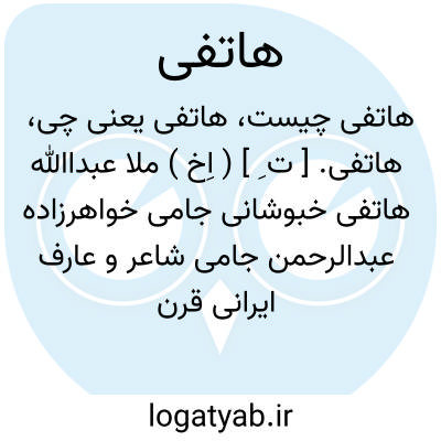 هاتفی. [ ت ِ ] ( اِخ ) ملا عبداﷲ هاتفی خبوشانی جامی خواهرزاده عبدالرحمن جامی شاعر و عارف ایرانی قرن نهم ( متوفی 927 هَ. ق. ) بوده است. چهار کتاب لیلی و مجنون، شیرین و خسرو، هفت منظر، تمرنامه ( ظفرنامه ) را به تقلید خمسه نظامی به نظم کشیده، ولی از کتاب پنجم وی نامی در جایی و اثری در کتابی نیست. شاید توفیق به مبادرت جواب مخزن الاسرار نیافته باشد. سام میرزا در تحفه سامی گوید: «به سال 917 که شاه اسماعیل پس از فتح بلاد خراسان متوجه بلاد عراق بودند در حوالی قصبه خرجرد جام جهت زیارت تربت شاه قاسم انوار نزول فرموده بودند، بر سبیل گشت به در باغ هاتفی رسیدند، مولانا خبردار شد و به استقبال شتافت مورد عنایات واقع شد، و مأمور نظم فتوحات شاهی شد در حدود 21هزار بیت آن را به نظم آورد، اما توفیق اتمام آن را نیافت. به سبک و وزن شاهنامه فردوسی است و شاهنامه حضرت شاه اسماعیل نام دارد. چند بیت از این مثنوی در تحفه سامی نقل شده است. گذشته از این پنج مثنوی که یاد شد اثر دیگری از او در دست نیست و تذکره نویسان هم در این باب اشاره ای نکرده اند. وی دیوان قصائد و غزلیات داشته و خود در تمرنامه پیش از شروع به داستان بدین باب اشاره کرده است: