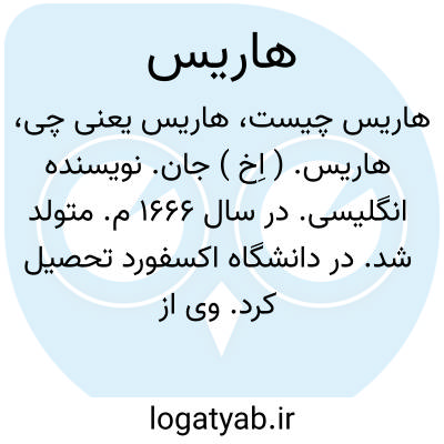 هاریس. ( اِخ ) جان. نویسنده انگلیسی. در سال 1666 م. متولد شد. در دانشگاه اکسفورد تحصیل کرد. وی از نویسندگان برجسته اولین دائرةالمعارف انگلیسی و بهترین نویسنده لغات فنی و هنری و نیز از نخستین اعضاء انجمن شاهی بود ومدتی نیابت ریاست آن انجمن را داشت. هاریس در سال 1719 وفات یافته است. ( از دایرةالمعارف بریتانیکا ).