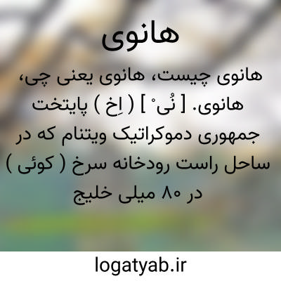 هانوی. [ نُی ْ ] ( اِخ ) پایتخت جمهوری دموکراتیک ویتنام که در ساحل راست رودخانه سرخ ( کوئی ) در 80 میلی خلیج تنکین واقع شده جمعیت آن در سال 1953 م. 297900 تن بوده است. این شهر دارای یک دانشگاه و چند مدرسه صنعتی و یک موزه و یک کتابخانه بزرگ عمومی میباشد. ( از دایرة المعارف بریتانیکا ).