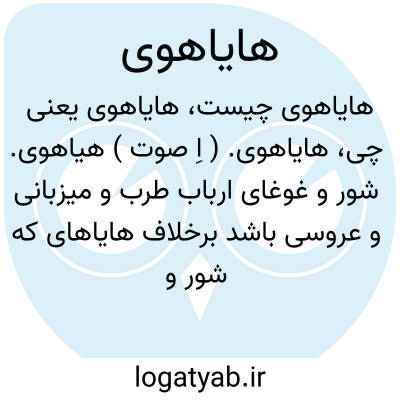 هایاهوی. ( اِ صوت ) هیاهوی. شور و غوغای ارباب طرب و میزبانی و عروسی باشد برخلاف هایاهای که شور و غوغای ماتمزدگان است. ( برهان ). شور و غوغای اهل طرب. ( ناظم الاطباء ). شور و غوغای شادی. هیاهو: