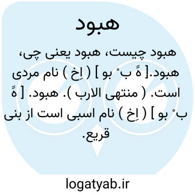 هبود. [ هََ ب ْ بو ] ( اِخ ) نام آبی است. ( معجم البلدان ) ( معجم متن اللغة ) ( منتهی الارب ). و آن را هبابید نیز گویند. ( منتهی الارب ) ( معجم متن اللغة ). این کلمه را به اعتبار آبهای اطرافش به «هبابید» جمع بندند. ( معجم البلدان ). رجوع به هبابید شود.
