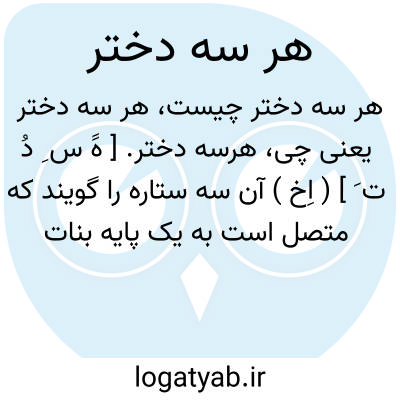 هرسه دختر. [ هََ س ِ دُ ت َ ] ( اِخ ) آن سه ستاره را گویند که متصل است به یک پایه بنات نعش. ( برهان ).