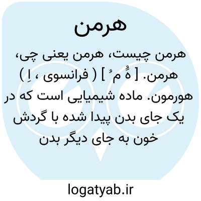 (اسم ) قسمتی ازترشحات داخلی که وسیل. غدد مترشحه داخی ترشح میشود واثرتحریکی و حیاتی بر روی سایر اعضائ بدن دارد. هورمون های دارای برخی خواص مشترکند اولا مانند کاتالیزورها بمقدارخیلی کم دارای اثرات خیلی زیادی هستتدولی معذلک بادیا ستارها تفاوت کلی دارند مثلا در اثر حرارت ازبین نمیروند و یالااقل در مقابل حرارتی که دیاستازها را از بین میبرد مقاومت کرده و از بین نمیروند ثانیا خواص یک آنتی ژن را هم ندارند یعنی اگر ببدن حیوانات تزریق شوند نه موجب عادت میشود و نه تولید مصونیت میکند و نه سبب پیدایش آنتی کور در بدن میشود. ثالثا فاقد خصوصیت زئولوژیکی هستند یعنی هورمون های مشابه در حیوانات مختلفه دارای اثرات مشابه هستند مثلا آدرنالیتی که از قسمت مغزی غد. فوق کلیوی یک پستاندار گرفته شود با آدرنالینی که از پراگانگلیون های سگ ماهیهابدست آید دارای خواص فیزیولوژیکی مشابه هستند اخیرا برخی ازهورمون را بطور مصنوعی نیزتهیه کرده اند ارمون.