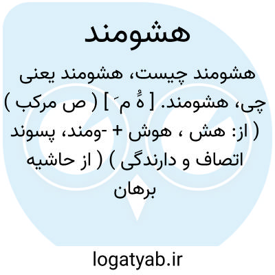 هشومند. [ هَُ م َ ] ( ص مرکب ) ( از: هش، هوش + -ومند، پسوند اتصاف و دارندگی ) ( از حاشیه برهان چ معین ). هوشمند. خداوند هوش و عقل و زیرکی. ( برهان ).