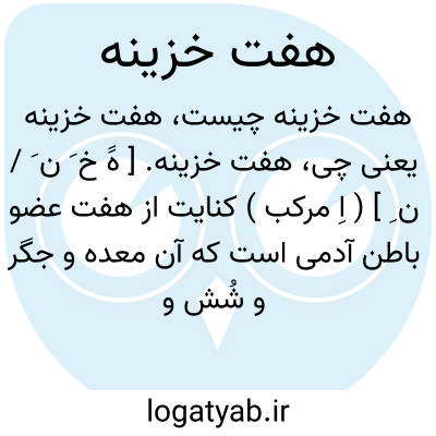 هفت خزینه. [ هََ خ َ ن َ / ن ِ ] ( اِ مرکب ) کنایت از هفت عضو باطن آدمی است که آن معده و جگر و شُش و دل و زَهره و سپرز و گرده باشد. ( برهان ). || کنایت از هفت آسمان هم هست. ( برهان ).