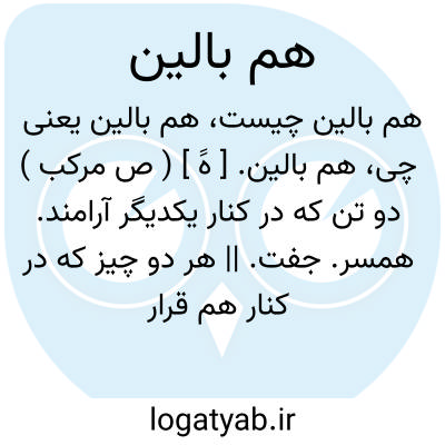 هم بالین. [ هََ ] ( ص مرکب ) دو تن که در کنار یکدیگر آرامند. همسر. جفت. || هر دو چیز که در کنار هم قرار گیرند: