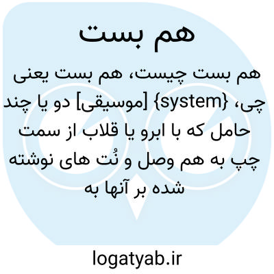 {system} [موسیقی] دو یا چند حامل که با ابرو یا قلاب از سمت چپ به هم وصل و نُت های نوشته شده بر آنها به طور هم زمان اجرا شود