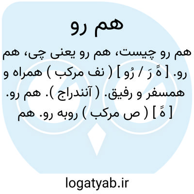هم رو. [ هََ ] ( ص مرکب ) روبه رو. هم صورت. ( آنندراج ).، همرو. [ هََ ] ( اِ ) امرود. نوعی از درختهای شمال ایران. ( یادداشت مؤلف ).