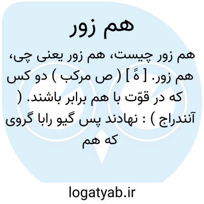هم زور. [ هََ ] ( ص مرکب ) دو کس که در قوّت با هم برابر باشند. ( آنندراج ):