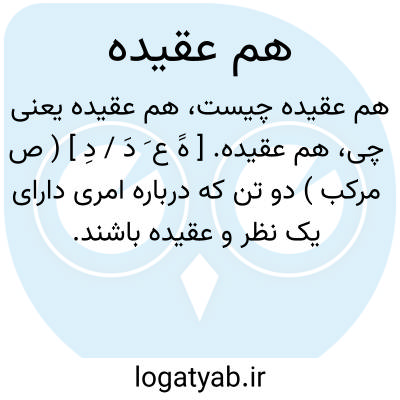 هم عقیده. [ هََ ع َ دَ / دِ ] ( ص مرکب ) دو تن که درباره امری دارای یک نظر و عقیده باشند.