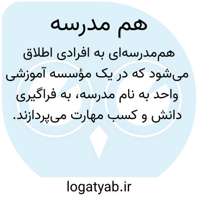 (صفت ) دو یا چند شاگرد یا معلم که در یک مدرسه بتحصیل یا تعلم مشغول باشند.