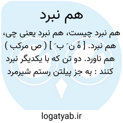 هم نبرد. [ هََ ن َ ب َ ] ( ص مرکب ) هم ناورد. دو تن که با یکدیگر نبرد کنند: