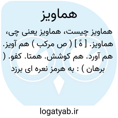 که دست و گریبان هماویز شد.نزاری.، ( هم آویز ) هم آویز. [ هََ ] ( ص مرکب ) هم آورد. هماویز. رجوع به هماویز شود.