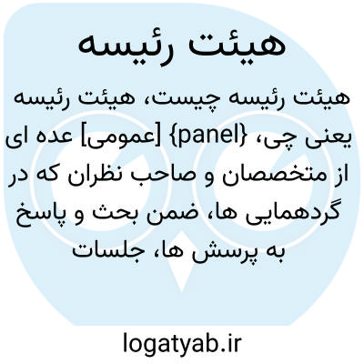 {panel} [عمومی] عده ای از متخصصان و صاحب نظران که در گردهمایی ها، ضمن بحث و پاسخ به پرسش ها، جلسات را اداره می کنند