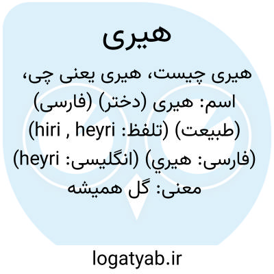 اسم: هیری (دختر) (فارسی) (طبیعت) (تلفظ: hiri , heyri) (فارسی: هيري) (انگلیسی: heyri)