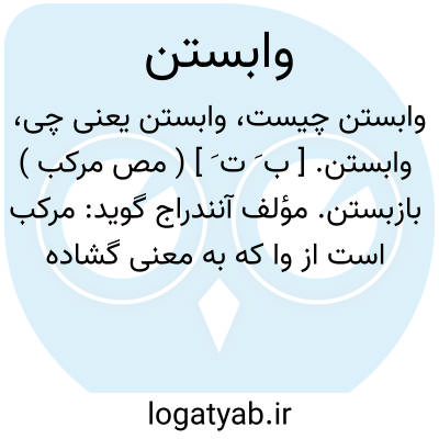 وابستن. [ ب َ ت َ ] ( مص مرکب ) بازبستن. مؤلف آنندراج گوید: مرکب است از وا که به معنی گشاده است و بستن که ضد آن است و این بر کسی یا چیزی مستعمل میشود که از یک سو گشاده و آزاد و از طرف دیگر بسته و پیوسته باشد همچون درآمدن مردی در گروهی و شمردن خود را از آن گروه یا منسوب داشتن خود را به خاندانی یا وانمودن خود را از مردمان شهری و کشوری چه اینهمه به ظاهر گشاده و آزادند مگر در نهان یک گونه بستگی دارند، در تازی نسبت و منسوب و انتساب باشد. ( از فرهنگ فرنگ و ترکتازان هندی ازآنندراج ). اما باید دانست که «وا» در این ترکیب مزید مقدم است بستن، متصل ساختن، بند کردن: