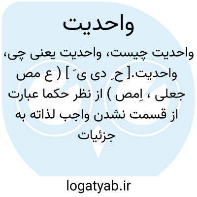 ( مصدر ) ۱ - یکتایی. ۲ - قسمت نشدن واجب لذاته بجزئیات. ۳ - محلی است که ذات در صفت تجلی کند وصفت در ذات به این اعتبار هر یک از اوصاف عین دیگری ظاهر میشود مثلا در منتقم عین خدا تجلی میکند و در خدا عین منتقم ظاهر میشود ( منتقم عین خدا و خدا عین منعم است ) و قس علل ذلک. هم. اینها آثار آنست ولی باعتبار فرق بین واحدیت و احدیت و الوهیت آنست که در احدیت چیزی از اسمائ و صفات ظهور نمی کند و در واحدیت اسما و صفات و موثرات آنها تجلی مینماید نهایت آنکه این امر بحکم ذات است نه بحکم اقتران آنها و هر یک از آنها عین دیگریست در الوهیت اسمائ و صفات بحکم آنکه هریک از جیمع آنها استحقاق دارد ظهور میکند است مثلا منعم ضد متقم و منتقم ضد منعم است.