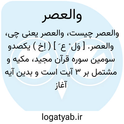 والعصر. [ وَل ْ ع َ ] ( اِخ ) یکصدو سومین سوره قرآن مجید، مکیه و مشتمل بر 3 آیت است و بدین آیه آغاز شود: والعصر ان الانسان لفی خسر.