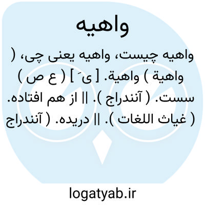 ( واهیة ) واهیة. [ ی َ ] ( ع ص ) سست. ( آنندراج ). || از هم افتاده. ( غیاث اللغات ). || دریده. ( آنندراج ). || تأنیث واه به معنی هرچیز مسترخی. ( ازمنتهی الارب ). تأنیث واهی است. رجوع به واهی شود.