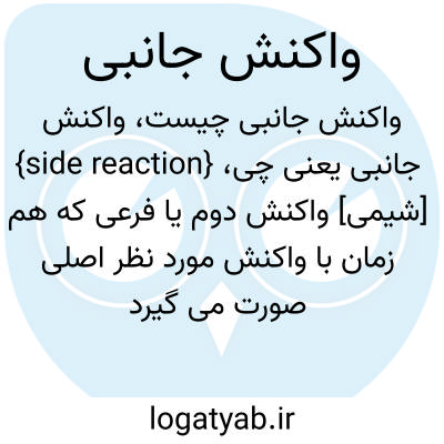 {side reaction} [شیمی] واکنش دوم یا فرعی که هم زمان با واکنش مورد نظر اصلی صورت می گیرد