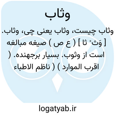 وثاب. [ وَث ْ ثا ] ( ع ص ) صیغه مبالغه است از وثوب. بسیار برجهنده. ( اقرب الموارد ) ( ناظم الاطباء ).