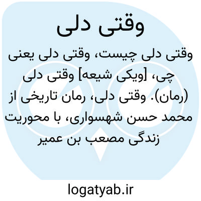 [ویکی شیعه] وقتی دلی (رمان). وقتی دلی، رمان تاریخی از محمد حسن شهسواری، با محوریت زندگی مصعب بن عمیر صحابی پیامبر اسلام است. این رمان در ۳۸۱ صفحه به زبانی ساده و روان نوشته شده است.