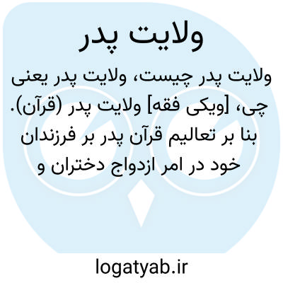[ویکی فقه] ولایت پدر (قرآن). بنا بر تعالیم قرآن پدر بر فرزندان خود در امر ازدواج دختران و بخشیدن نصف مهر دختر مطلقه ولایت دارد.