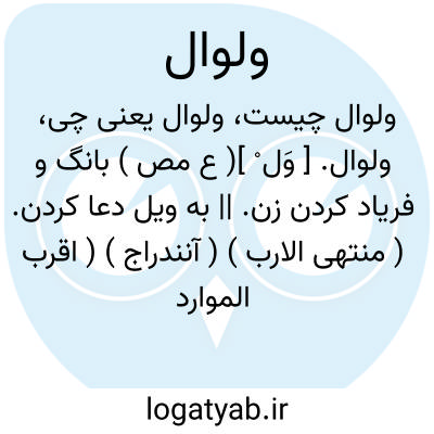 ولوال. [ وَل ْ ]( ع مص ) بانگ و فریاد کردن زن. || به ویل دعا کردن. ( منتهی الارب ) ( آنندراج ) ( اقرب الموارد ).